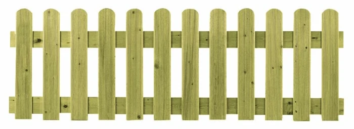 Het spijlen hek is gemaakt van geïmpregneerd vuren en is RVS geschroefd, zodat het goed beschermd is tegen weersinvloeden. De planken zijn fijn geribbeld en hebben een afgeronde bovenkant.