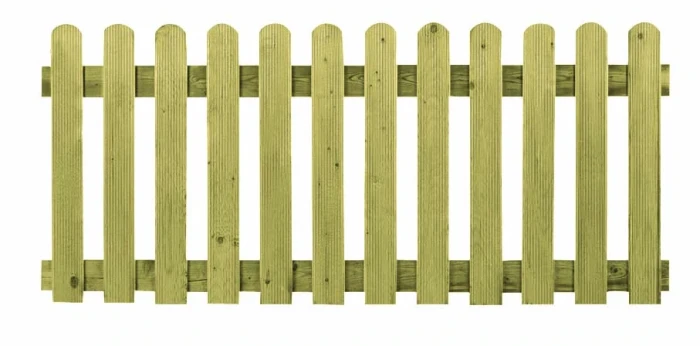 Het spijlen hek is gemaakt van geïmpregneerd vuren en is RVS geschroefd, zodat het goed beschermd is tegen weersinvloeden. De planken zijn fijn geribbeld en hebben een afgeronde bovenkant.