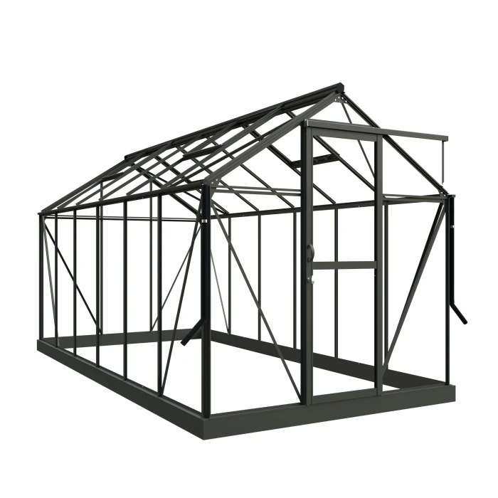 Met een Full Options pakket heb je alles in huis om een prachtige oogst te verkrijgen. Met een geïntegreerd schap, tafel, 4 pothouders in de kleur van de kas, containers (2x 15 liter en 1x 40 liter), 4 zwarte tomatenspiralen en automatische raamopener heb je alle accessoires om direct in tuinkas Mary van start te gaan. Ideaal! Daarnaast ontvang je bij aankoop van een kas in combinatie met een full option pakket 15% korting op de accessoires in het pakket. Tuinkas Mary van Royal Well is een elegante kas die niet alleen genoeg ruimte biedt om te kweken, maar ook om te ontspannen. Dit model met puntdak en schuifdeur met haakslot combineert functionaliteit met stijl. Het 3 mm dikke veiligheidsglas wordt bevestigd met dempend foamtape aan de binnenzijde en PVC beglazingstrips aan de buitenzijde, die eenvoudig te installeren zijn en naadloos aansluiten bij de kleur van de profielen. De meegeleverde, stevige fundering zorgt voor een stabiele basis, geschikt voor zowel onverharde als verharde ondergronden. De kas is uitgerust met dakgoten en twee regenpijpen, waarmee je regenwater kunt opvangen. Met een nokhoogte van 245 cm biedt deze kas een ruimtelijk en open gevoel, ideaal voor comfortabel kweken.