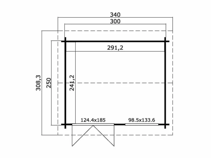 Het tuinhuis heeft een breedte van 300 cm, een diepte van 250 cm en een hoogte van 245 cm. Het tuinhuis wordt geleverd met een dubbele deur van 124 cm breed en 185 cm hoog en een dubbel raam van 99 cm breed en 134 cm hoog. Het tuinhuis wordt geleverd inclusief een vloer van Noord-Europees vuren. Het tuinhuis kan eenvoudig worden opgebouwd met 44 mm profielen met veer en groef van Scandinavisch vuren hout. De profielen zijn gemakkelijk te stapelen waardoor het tuinhuis eenvoudig op te bouwen is.